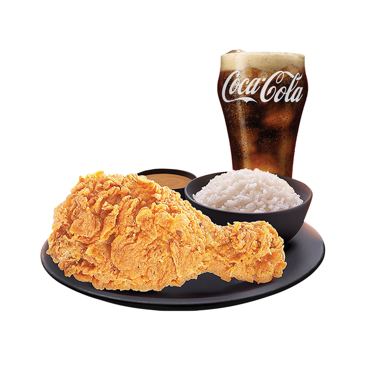 1-pc fried chicken, rice and gravy. Served with regular drink.
